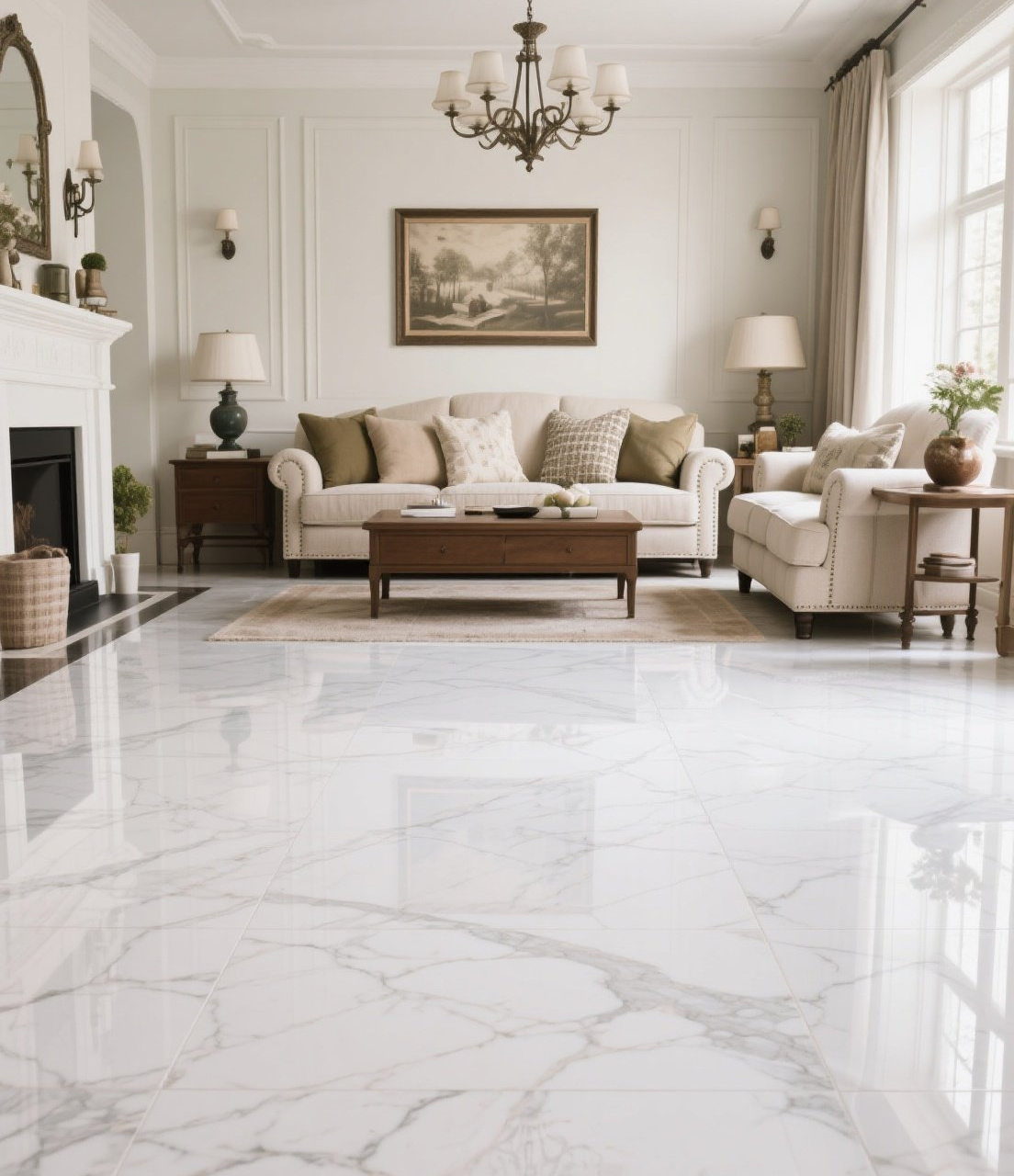 PŁYTKI CALACATTA gresowe 80×80 POŁYSK cheval biały marmur połysk